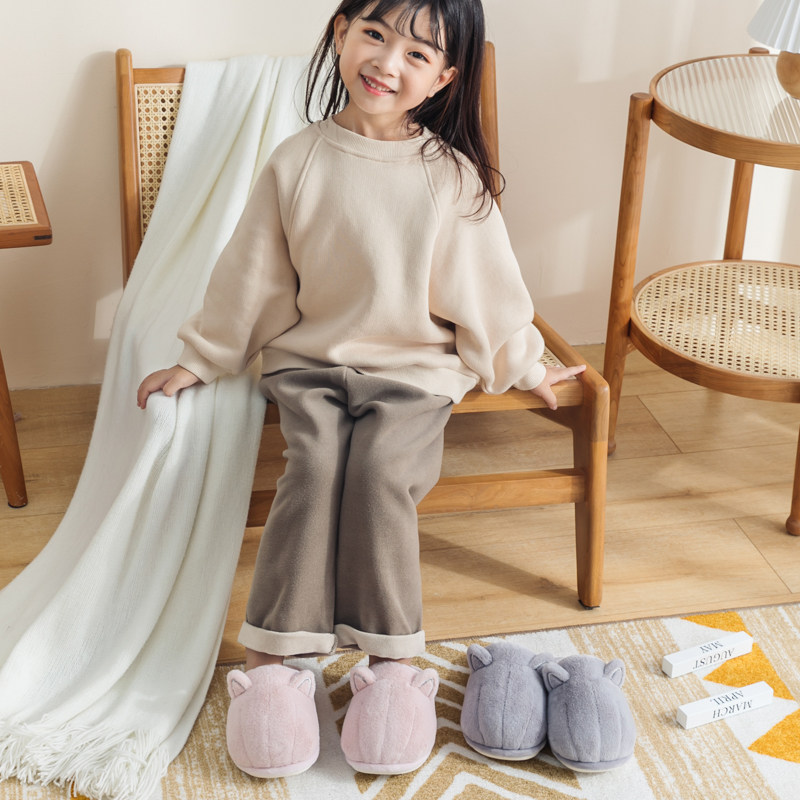 款 男女童室内家居保暖可爱中大童棉拖踩屎感 女冬季 猫咪儿童棉拖鞋由