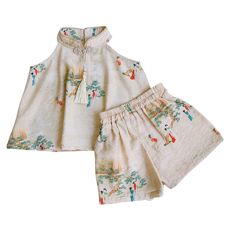 为您提供商品中式 新款 2026夏季 两件套 吊带衫 短裤 古风无袖 中国风洋气女童套装的详细介绍,