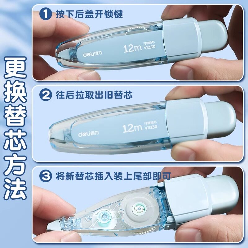大容量改错带文具高颜值男女生初中生用改字修改带小学生改正带 得力修正带学生专用可换替芯按动涂改带实惠装由