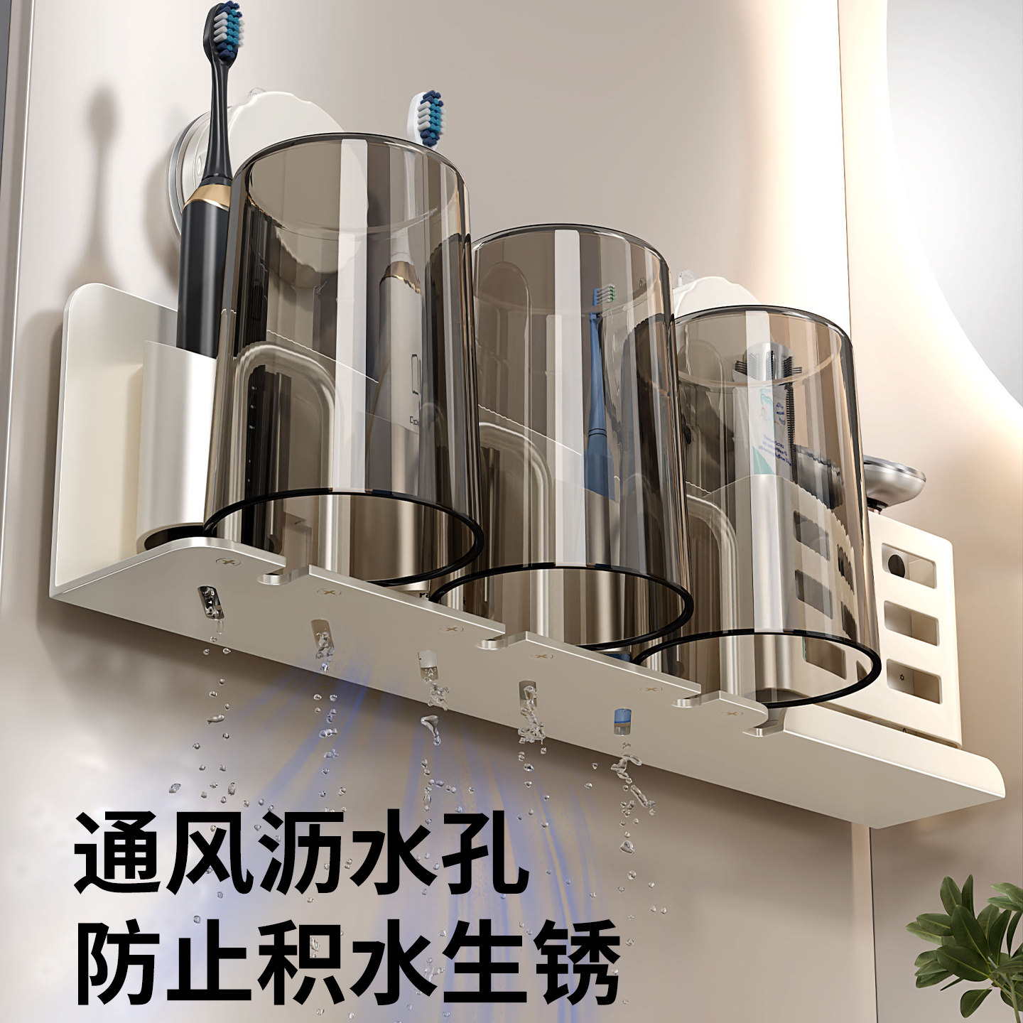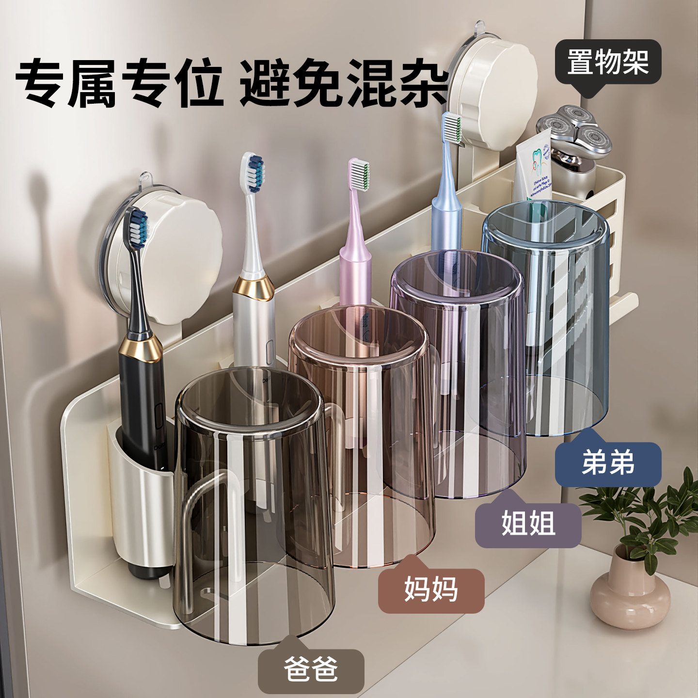 牙杯架电动牙刷架 浴室吸盘牙刷置物架卫生间漱口杯挂架家用壁挂式