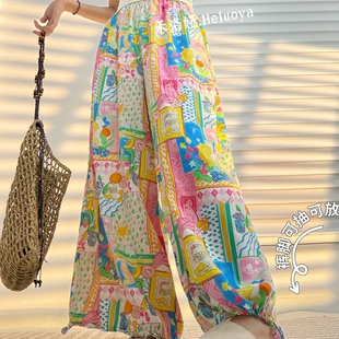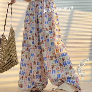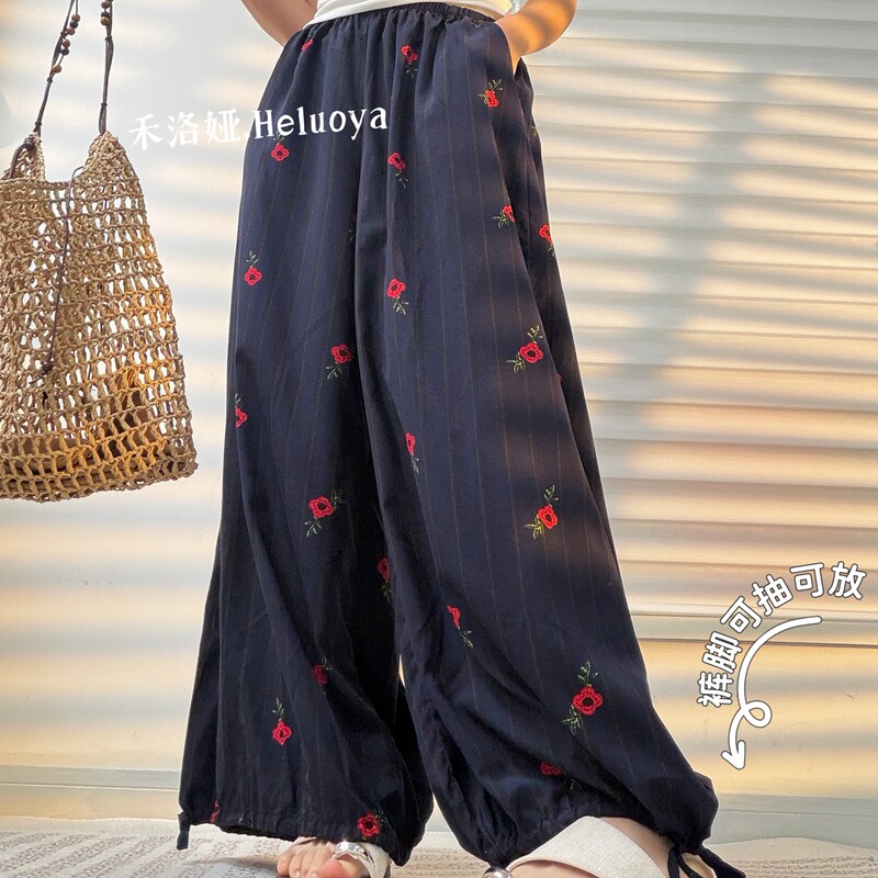夏季 下摆可抽绳 加大裙裤 宽松薄款 棉绸大码 胖MM九分休闲裤 女款由