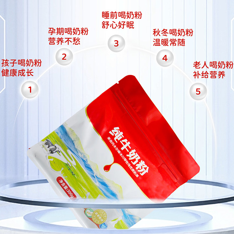 牧场中老年人成人全脂高钙奶粉纯牛奶粉 新疆新农全脂奶粉300g袋装由