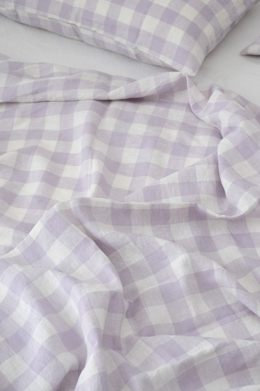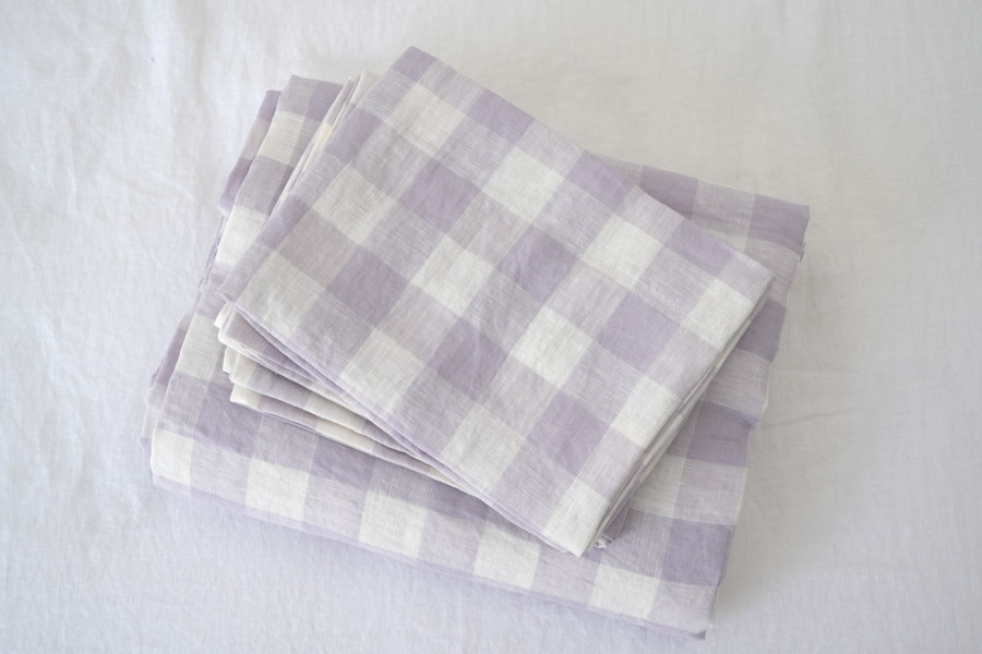 现货法国亚麻浅紫色色织水洗亚麻床上用品被套床单透气抑菌 新品由