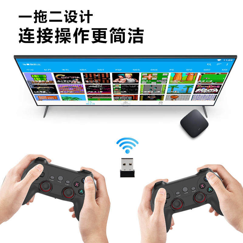 一拖二无线游戏手柄EMUELEC2.4G手柄PC电脑安卓IOS手机通用双打