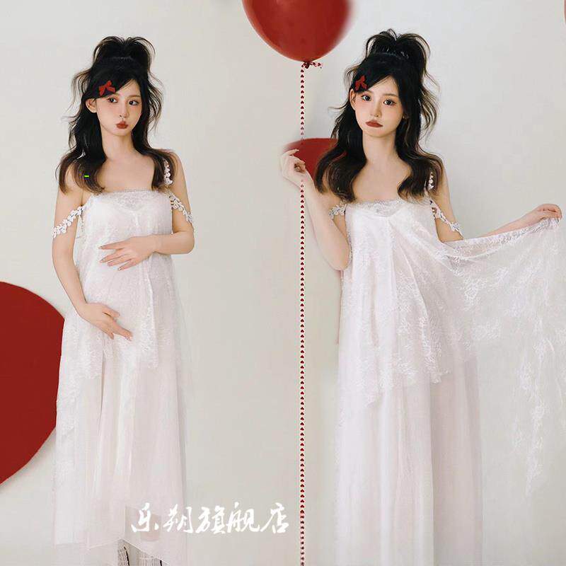为您提供商品影楼新款 甜美蕾丝超仙白色吊带裙孕妈咪大肚照写真 韩系孕妇照服装的详细介绍,