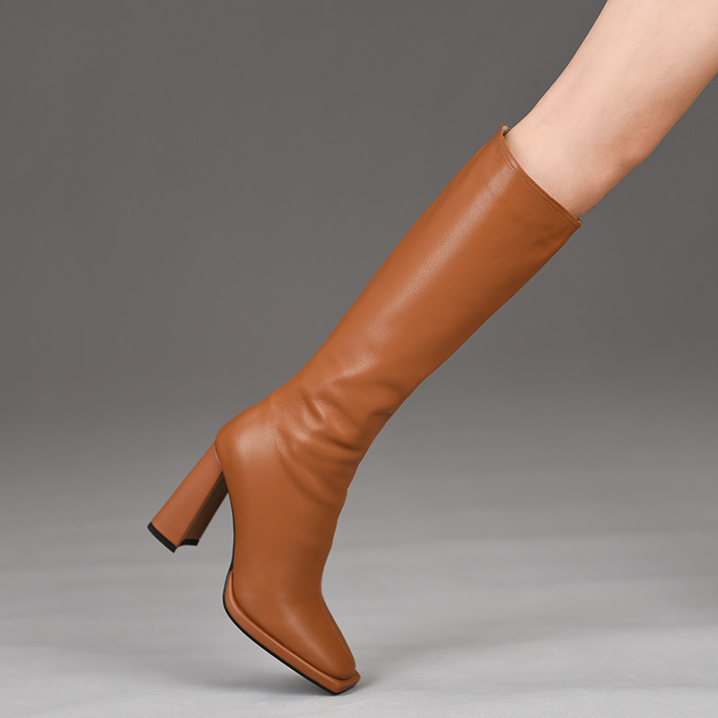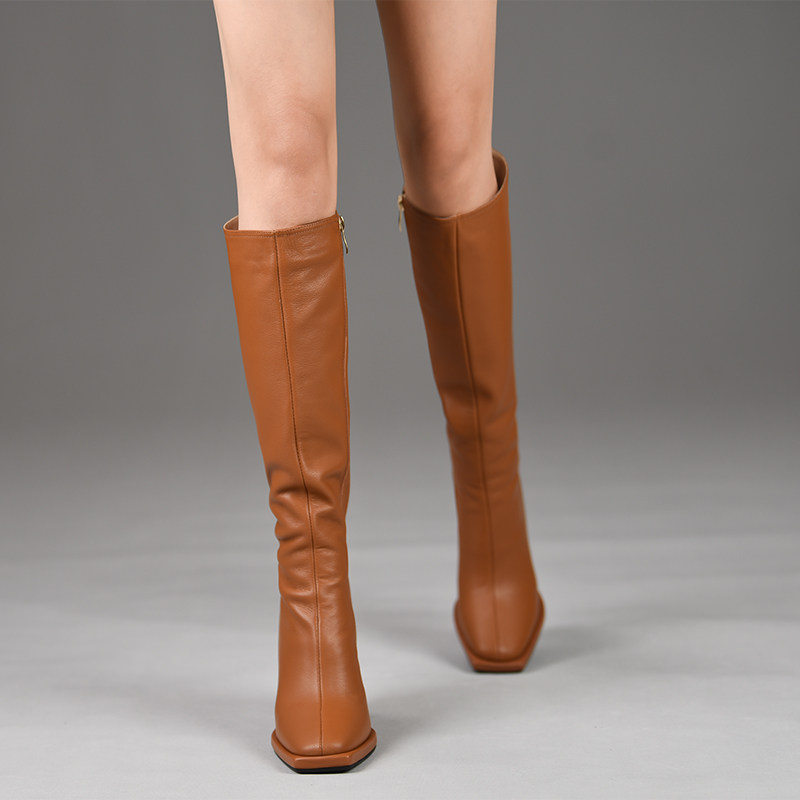 为您提供商品misili 新款 高跟鞋 棕色女靴子 9.8cm方头平底粗跟长靴女2026秋冬季的详细介绍,