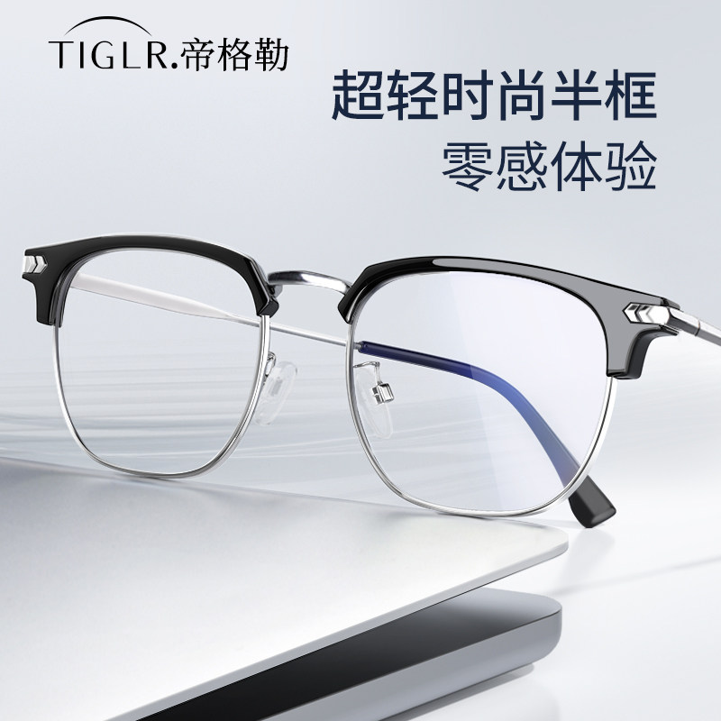 商务半框眼睛架定制成品光学镜可配度数近视框眼镜防蓝光 狂飙男士