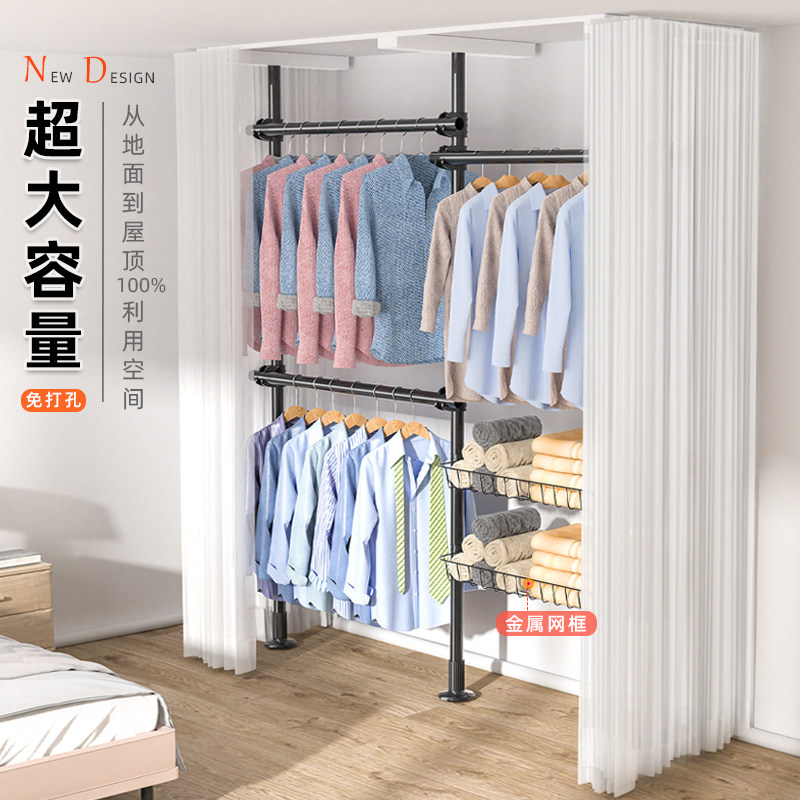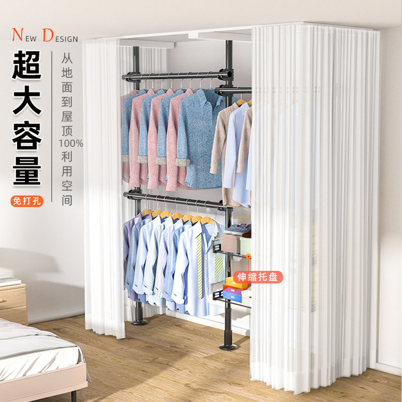 顶天立地式 租房宿舍卧室置衣架收纳衣橱 简易衣柜金属钢架结构组装由