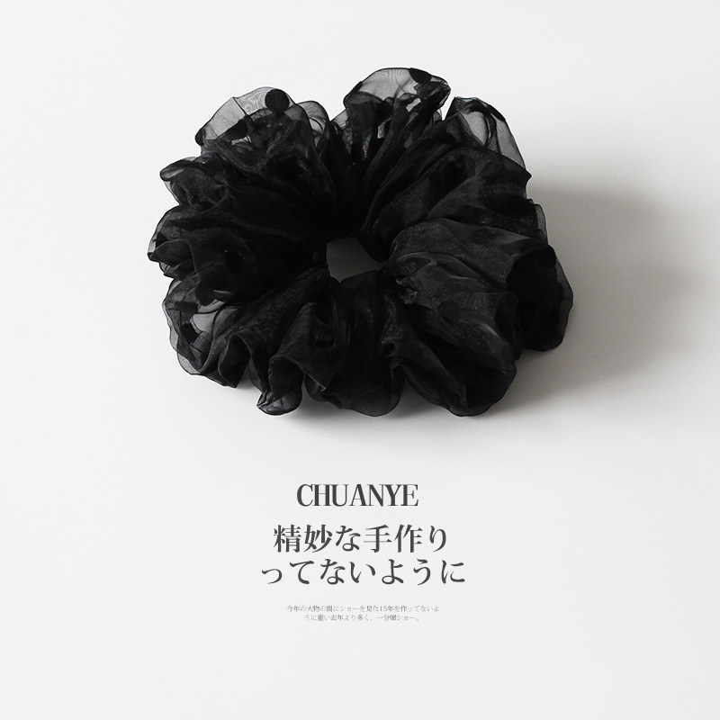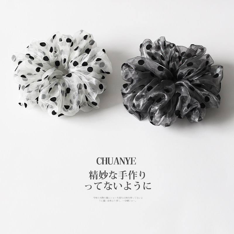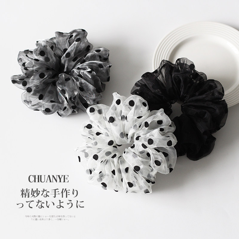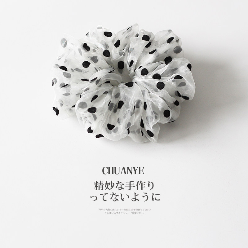 川野法式 轻奢百搭扎低丸子头皮筋头饰发饰 黑色波点大肠发圈女新款