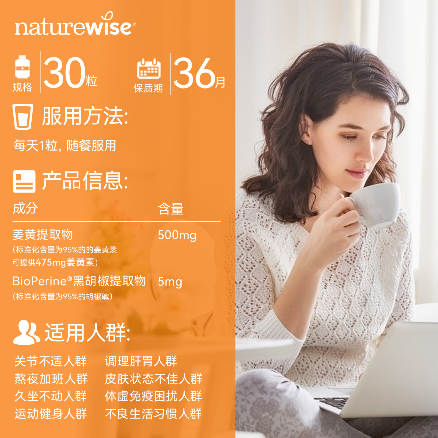 为您提供商品Naturewise郁金瓶液体姜黄素软胶囊黑胡椒姜黄素关节加班熬夜肝的详细介绍,