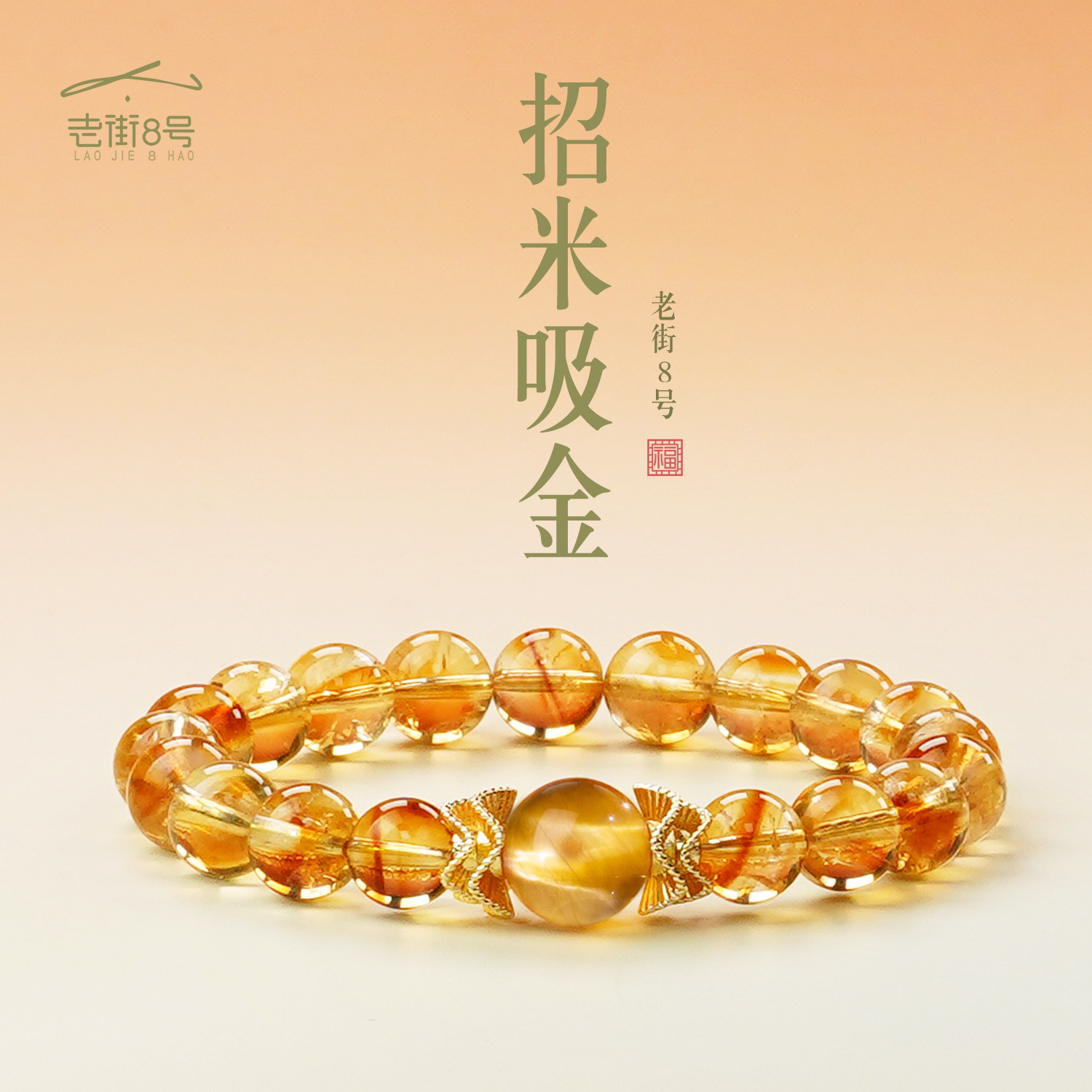 国风招财转运珠子饰品手饰礼物手串首饰 阿吉豆黄水晶手链女新中式