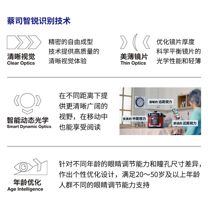 为您提供商品蔡司智锐渐进多焦点钻立方铂金膜防卫膜变色防蓝光PLUS近视镜片的详细介绍,