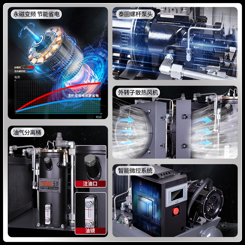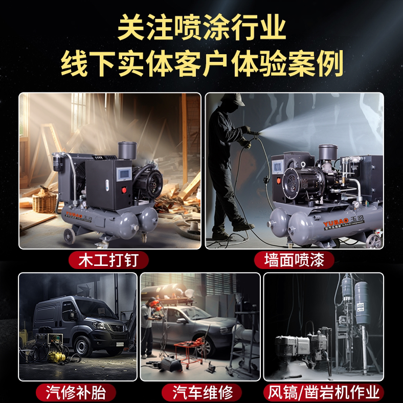 玉豹无油静音空压机工业级空气压缩机220V气磅大型喷漆高压冲气泵
