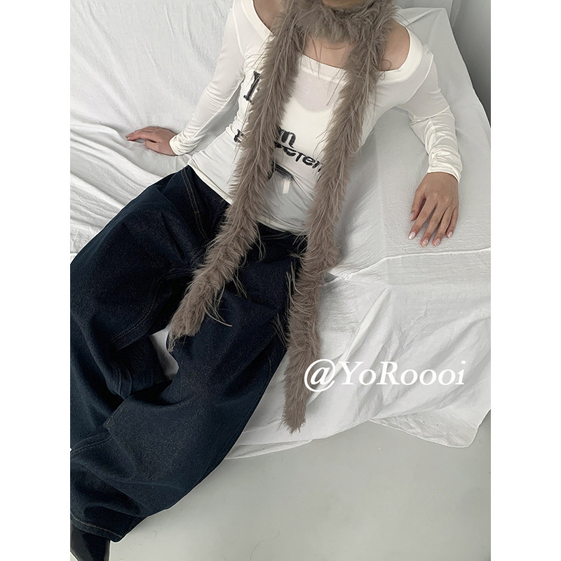 YoRoooi 饰 小众秋冬毛茸茸小众y2k辣妹凹造型多用腰带保暖围脖装