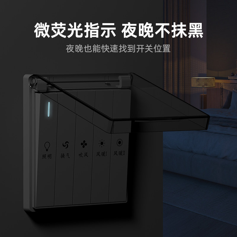浴霸专用开关五开86型四开风暖滑盖通用浴室防水卫生间五合一触摸
