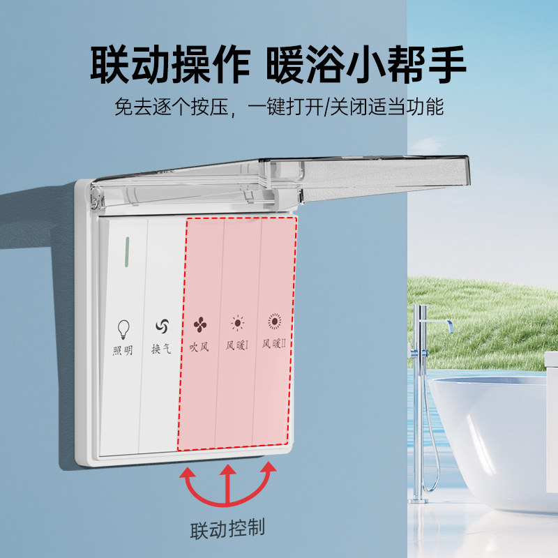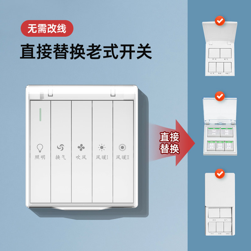 浴霸专用四联五联六联防水开关适用奥普某普等浴霸灯风暖翻盖通用