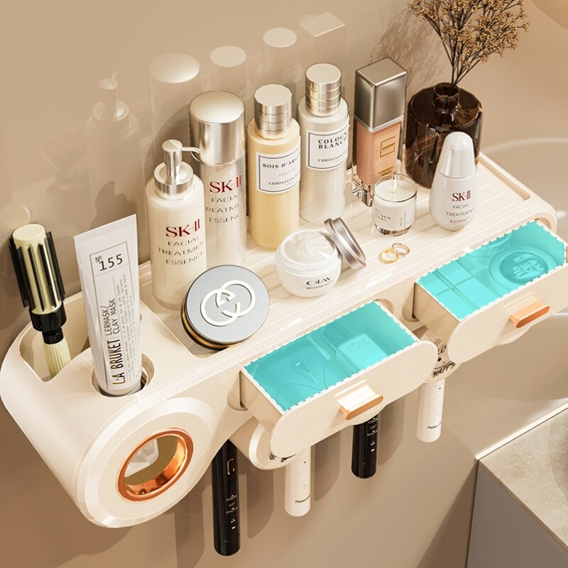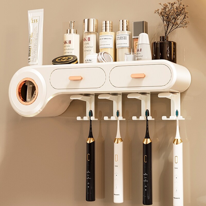 免打孔卫生间牙具座牙膏收纳浴室 牙刷牙杯壁挂置物架电动牙刷套装
