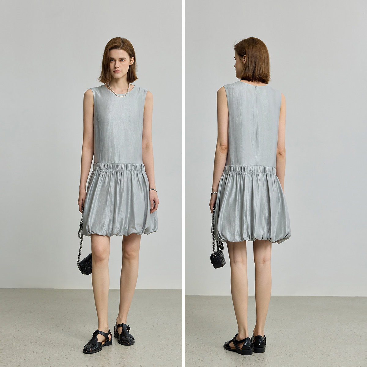LILY2026夏新款 ART系列 商场同款 气球裙花苞连衣裙 格雷系无袖