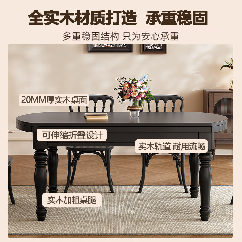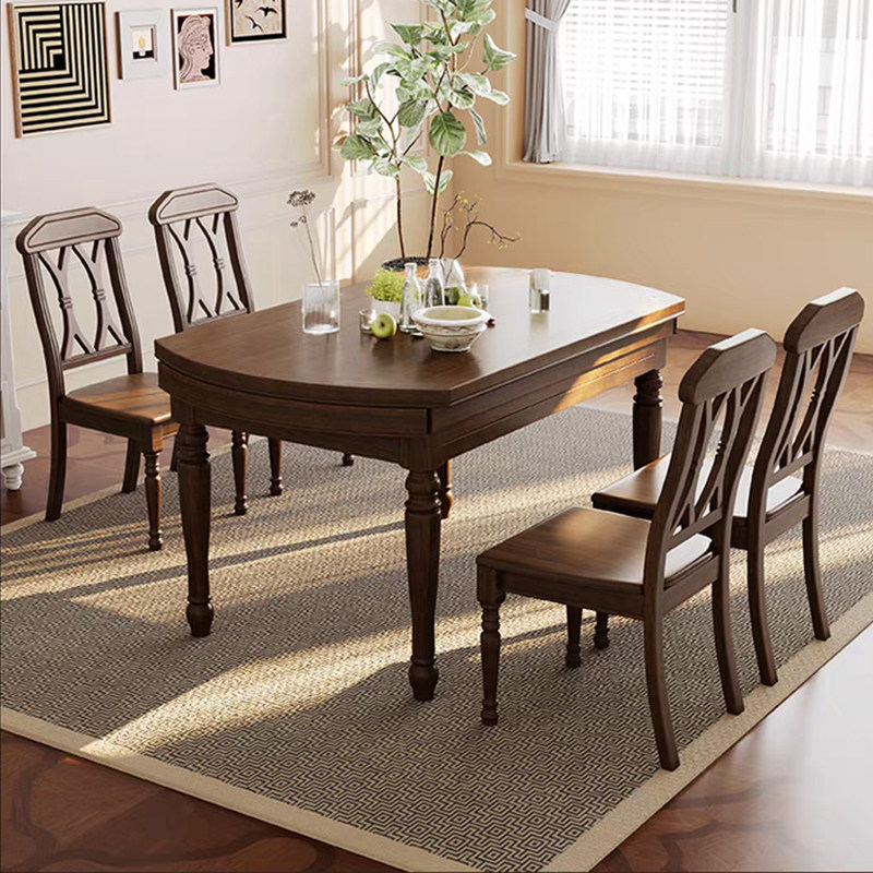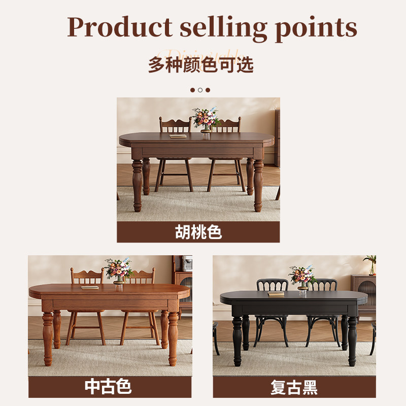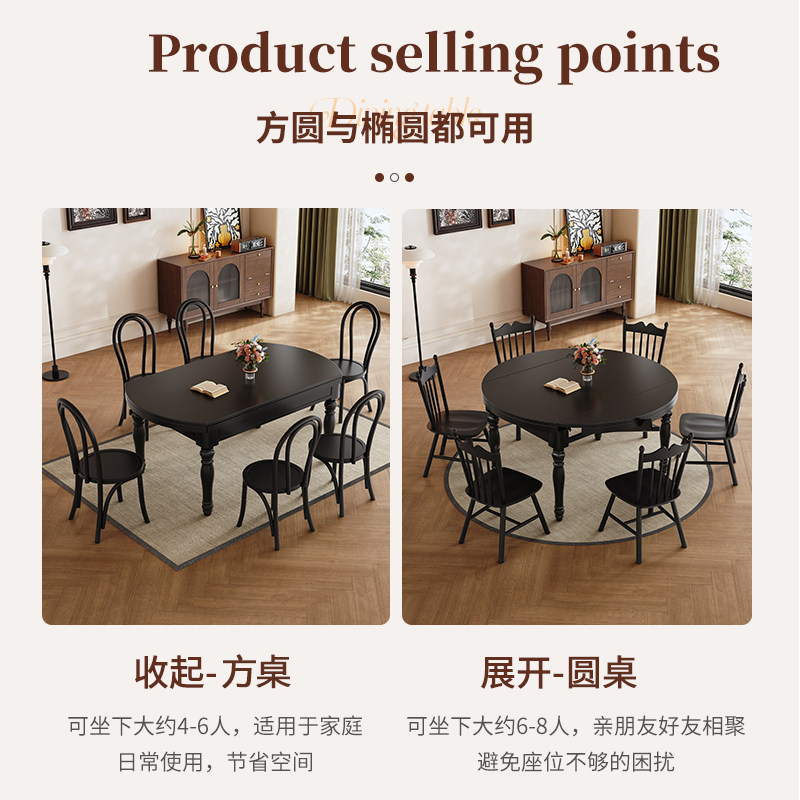 为您提供商品实木餐桌可伸缩方变圆桌胡桃木色小户型家用复古折叠吃饭桌子 美式的详细介绍,