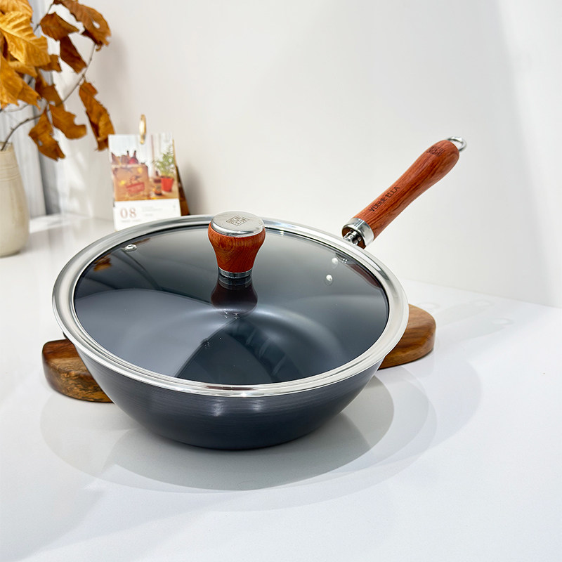 康巴赫Pro版 真钛0涂层炒锅无涂层家用不粘锅不锈钢炒菜锅 新品