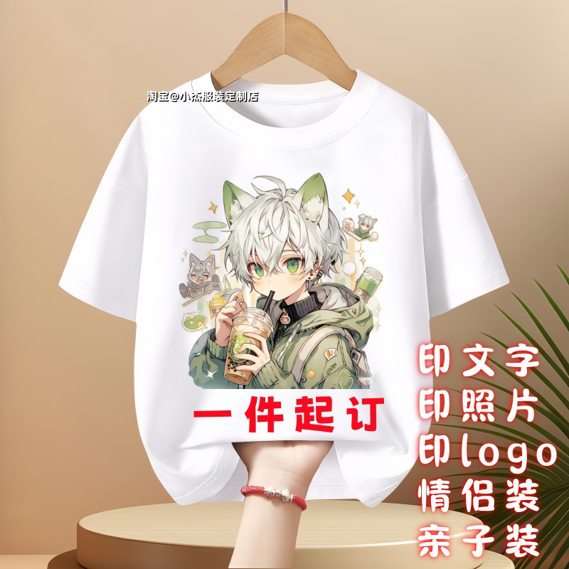 直喷柯式 烫画男女 T恤印制来图定制DIY数码 重磅落肩纯棉圆领短袖