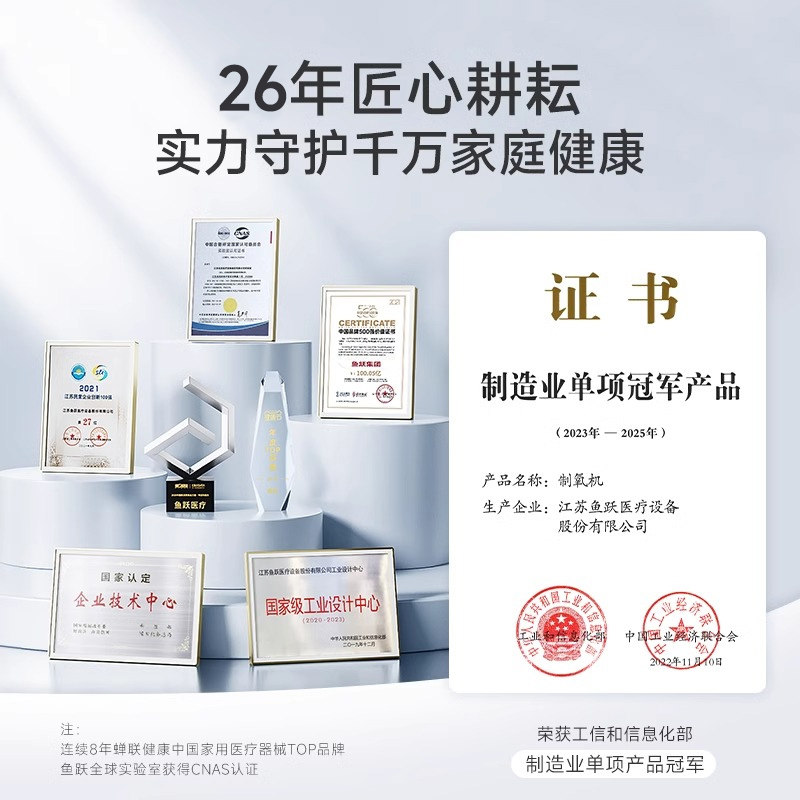 鱼跃制氧机轻音家用老人保健吸氧孕妇氧气7L流量可调官方旗舰店