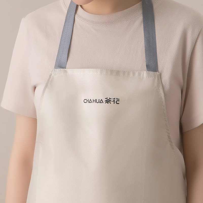 茶花围裙厨房家用防水防油污渍做饭罩衣女围腰餐饮工作专用大口袋