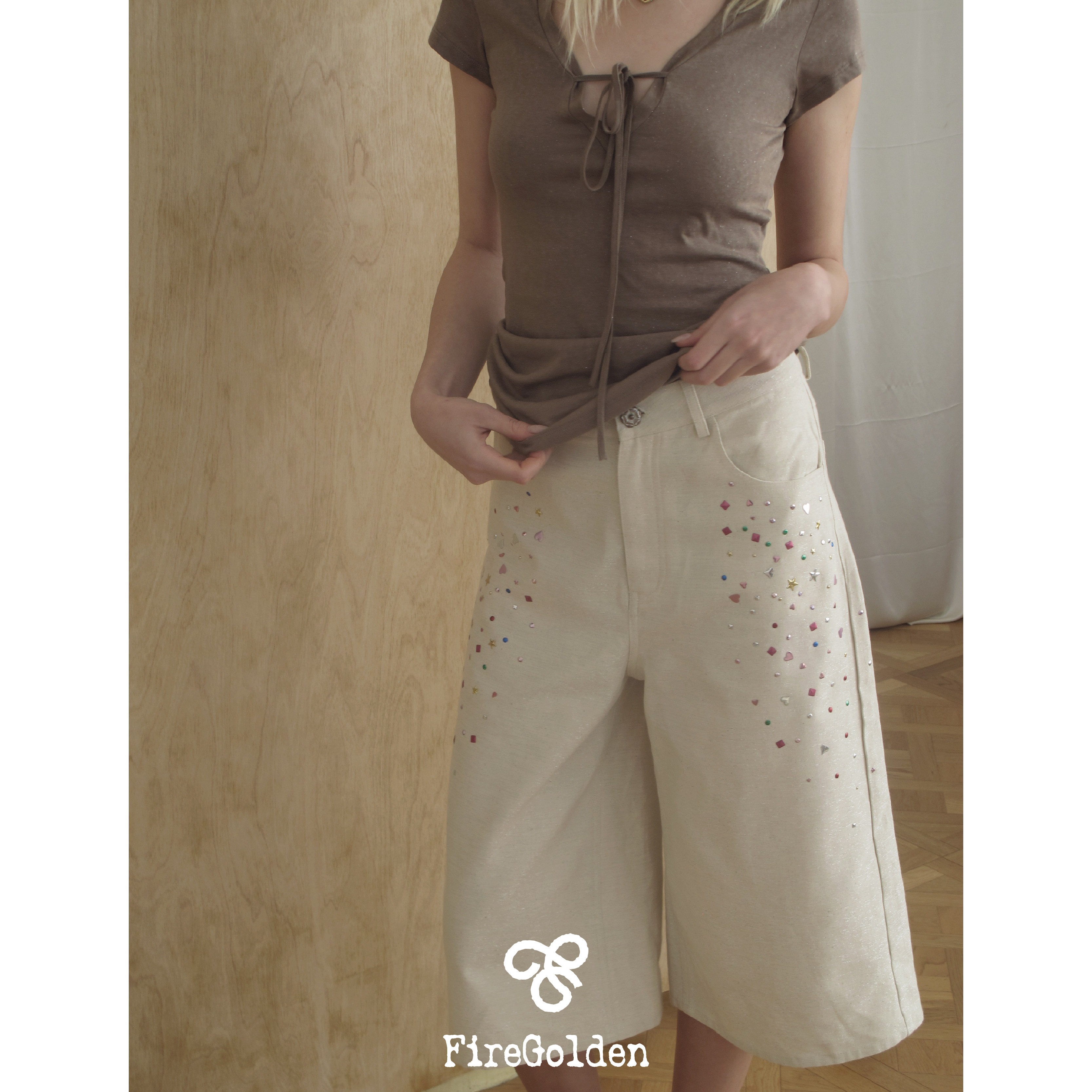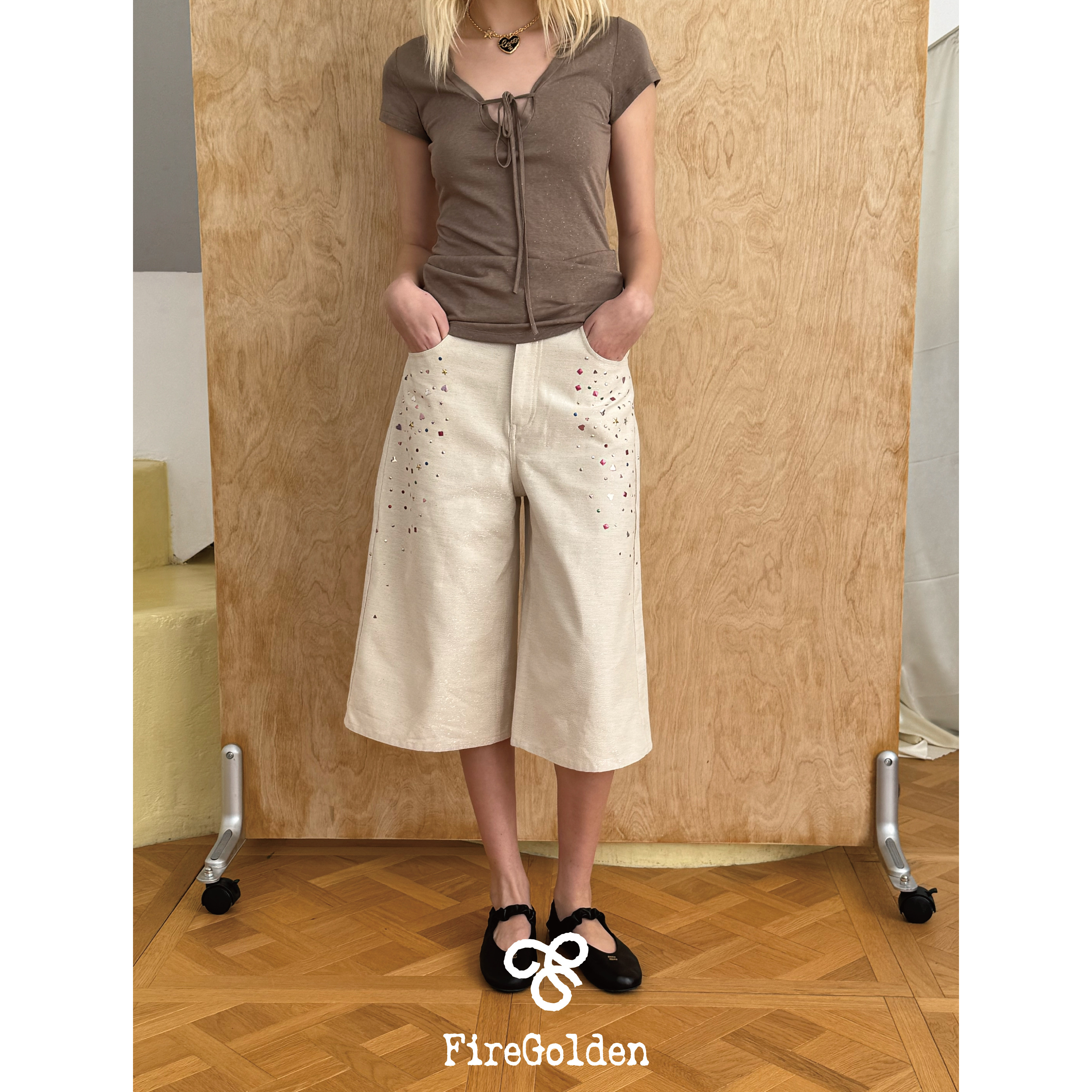 为您提供商品牛仔裤 素拼蕾丝口袋宽松中腰长裤 FireGolden炉2025春夏烫钻元的详细介绍,