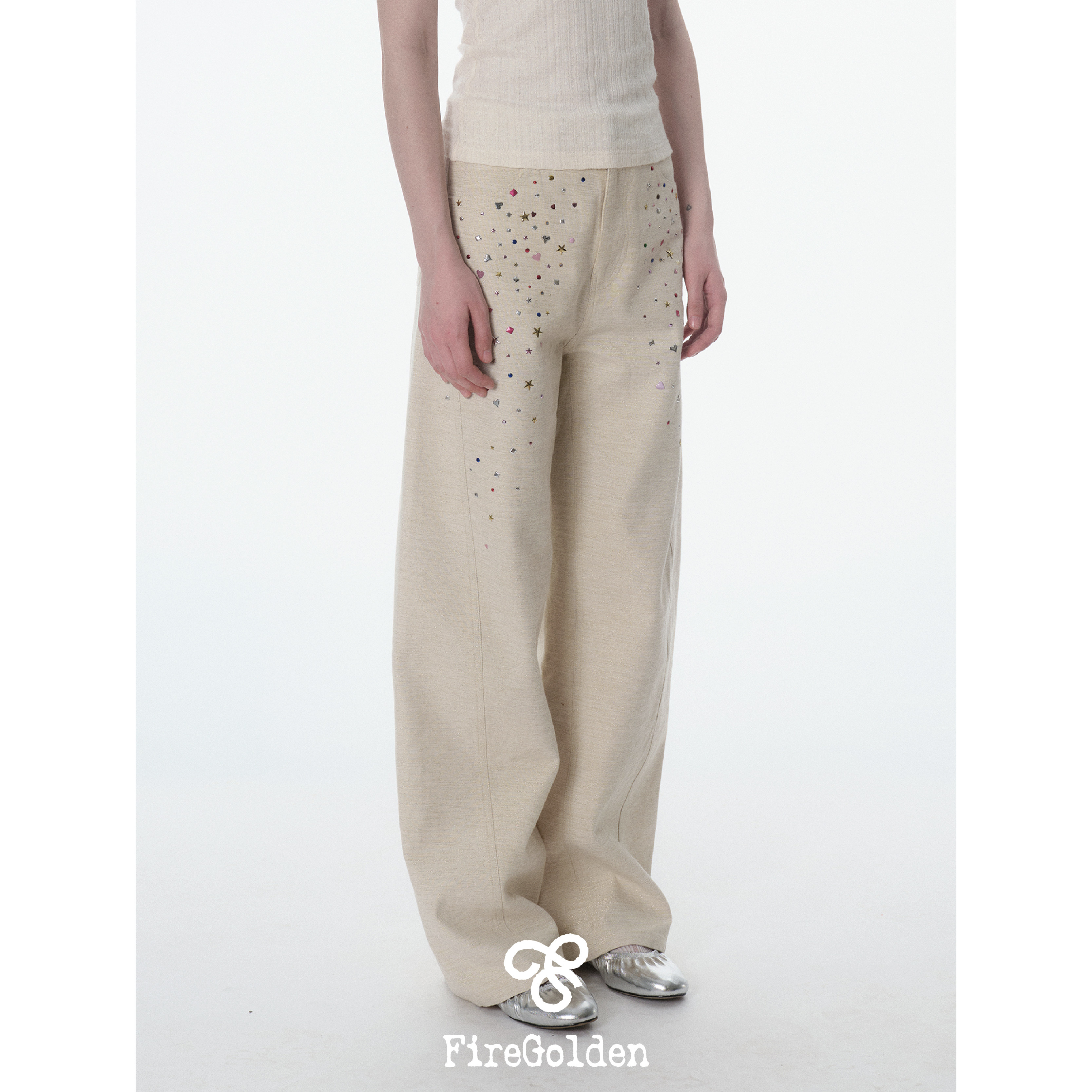 牛仔裤 素拼蕾丝口袋宽松中腰长裤 FireGolden炉2025春夏烫钻元由