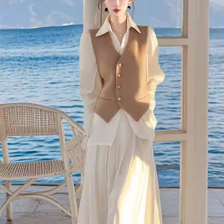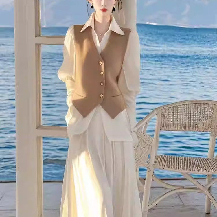 为您提供商品半身裙套装 一整套穿搭高级感气质名媛小香风杏色马甲衬衫 2025春季的详细介绍,