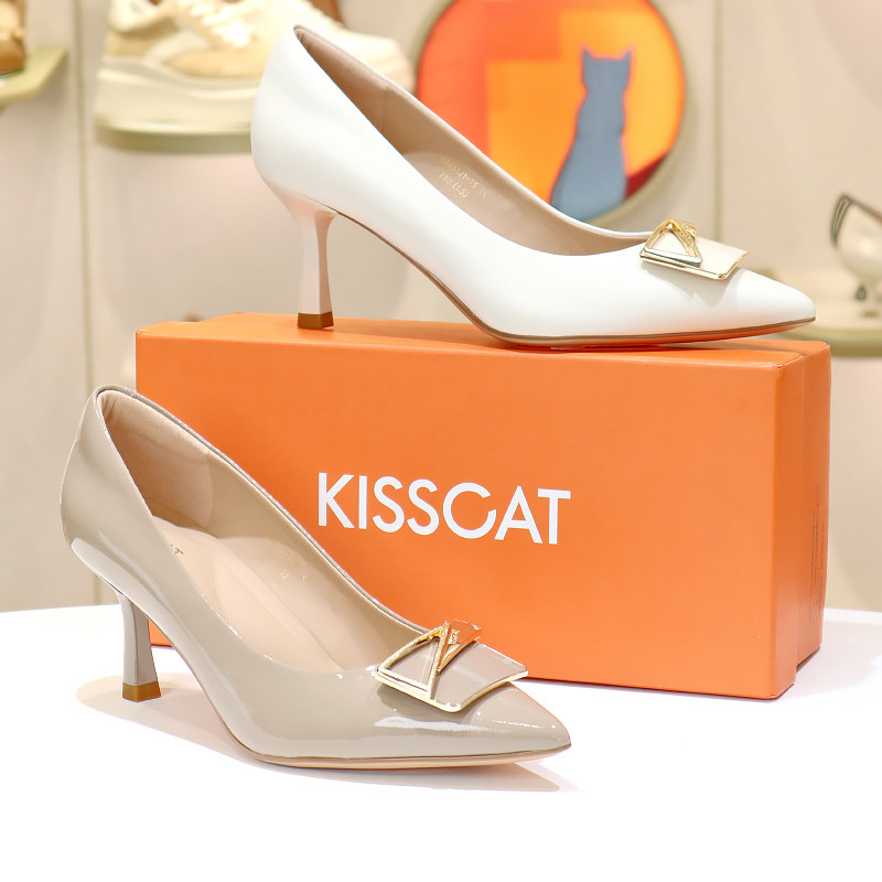 KISSCAT接吻猫2026新款 真皮通勤气质单鞋 女KA65121 尖头高跟鞋