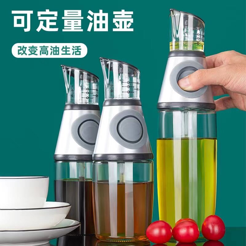 家用控油健康耐熱高硼硅玻璃防漏定量油壶 德国定量玻璃油瓶按压式由