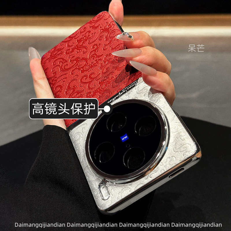 国潮新款 pro手机壳vivox200pro浮雕云龙纹皮质红色x90防摔x100中国风女潮vivox200 x300祥云纹适用vivoX100S
