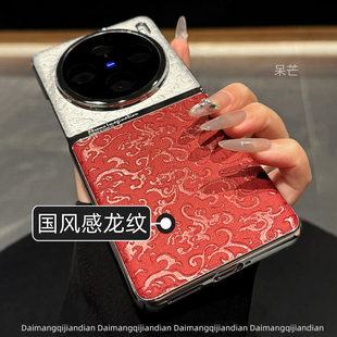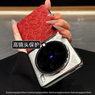 国潮新款 pro手机壳vivox200pro浮雕云龙纹皮质红色x90防摔x100中国风女潮vivox200 x300祥云纹适用vivoX100S由