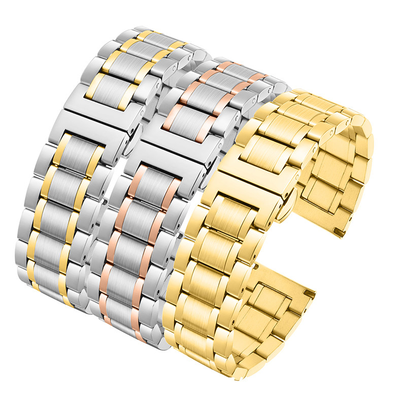 适配上海手表表带老上海 箐睿 剪影系列亲民手表带实芯精钢表链男女经典 不锈钢表链蝴蝶扣钢链 流转