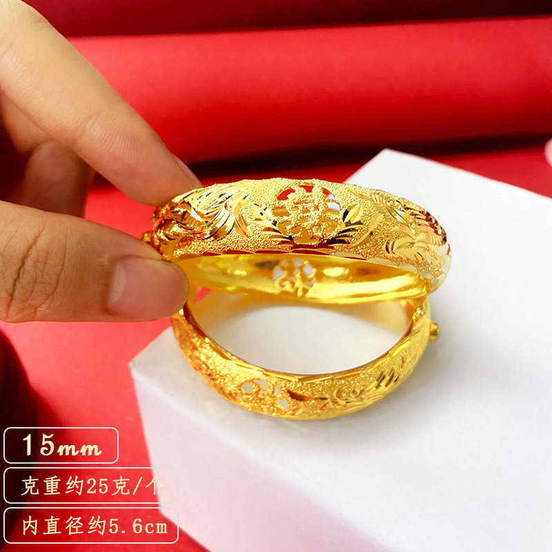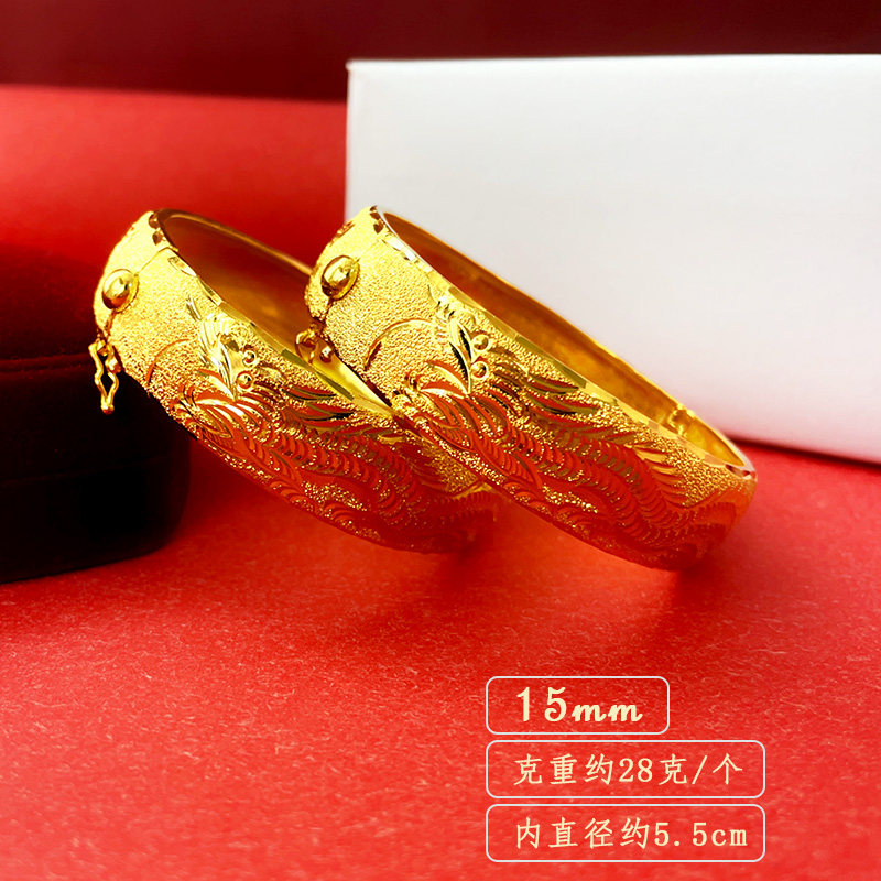 婚礼道具沙金手镯新娘结婚龙凤手镯铜镀金婚庆镯子三金饰品女 中式