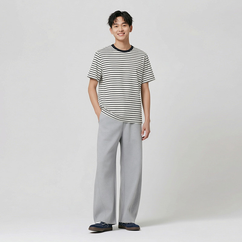 条纹拼边短T恤常规款 热风2026年夏季 新款 男士 圆领日常套头短袖
