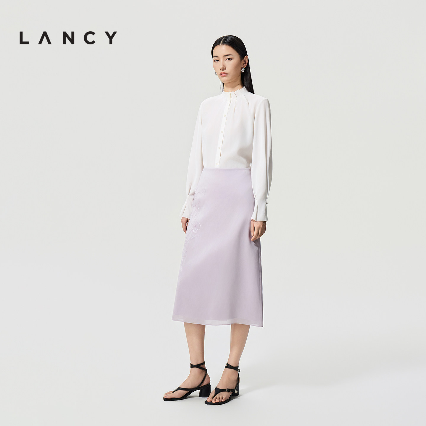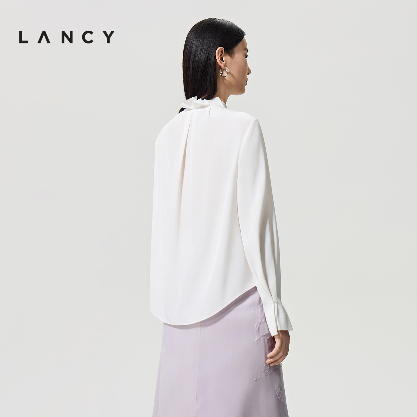 朗姿2026夏季 LANCY 真丝 通勤上衣 法式 宫廷风立领捏褶衬衫 新款由