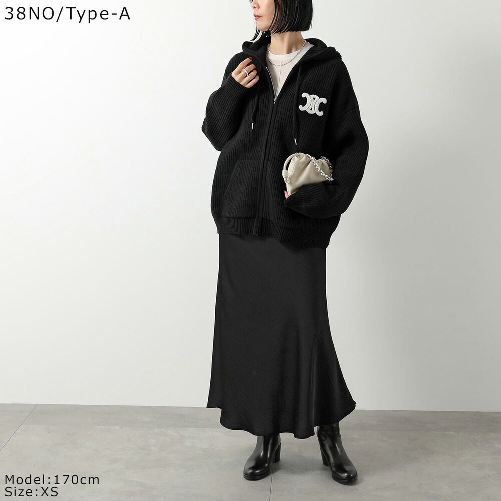 女士黑色罗纹针织拉链连帽衫 饰有 RY0JF0ZTQ.38NO 日本直邮CELINE由