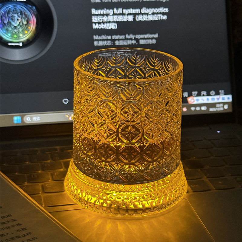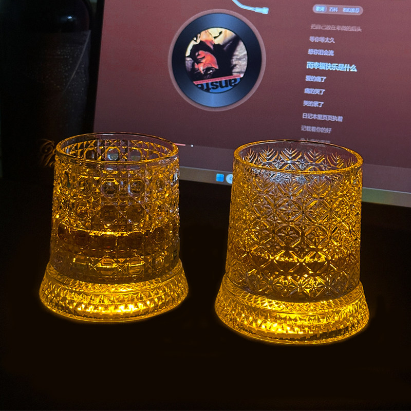 网红旋转威士忌酒杯高颜值洋酒杯解压杯个性 发光杯 送发光杯垫