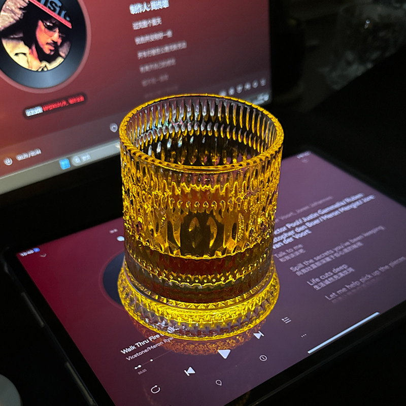 红色冰块玻璃杯小众设计轻奢高档喝水杯高级感威士忌酒杯洋酒杯