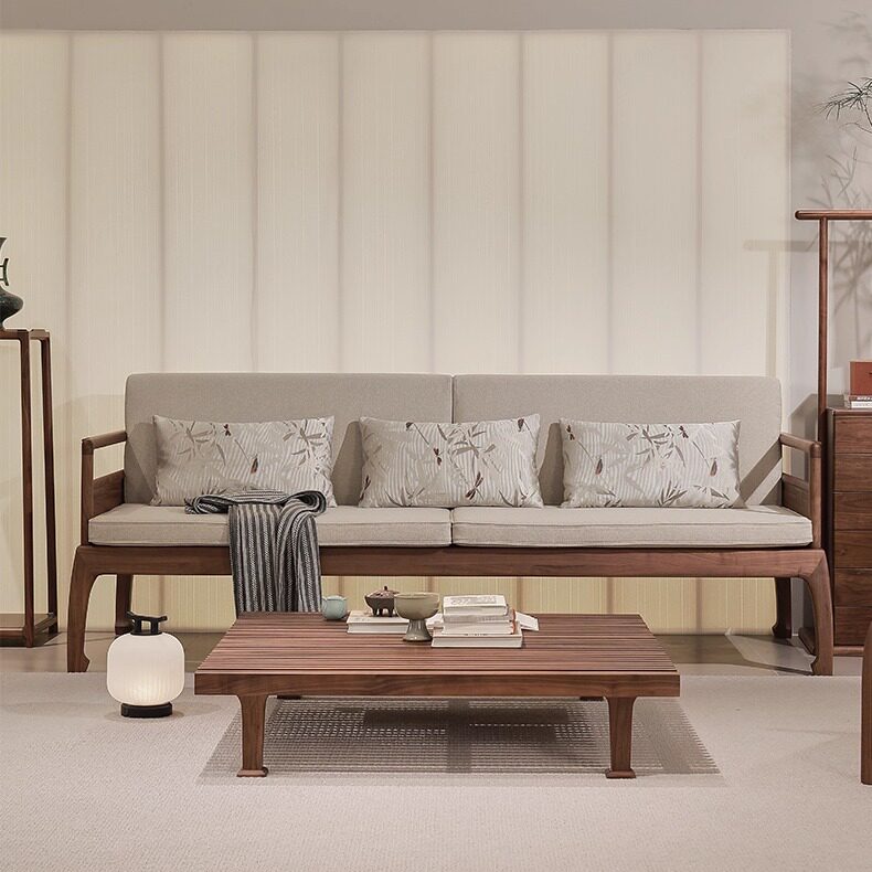 宋式 沙发轻奢高级全套家具 美学实木沙发组合客厅直排沙发新中式
