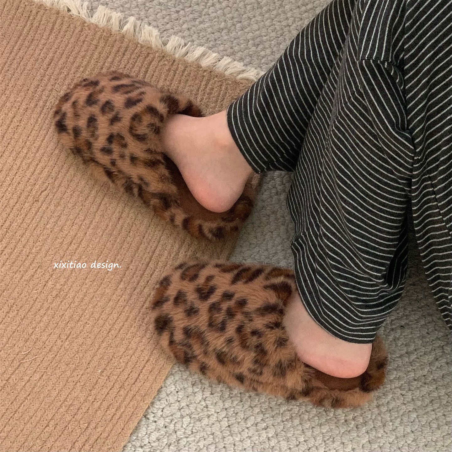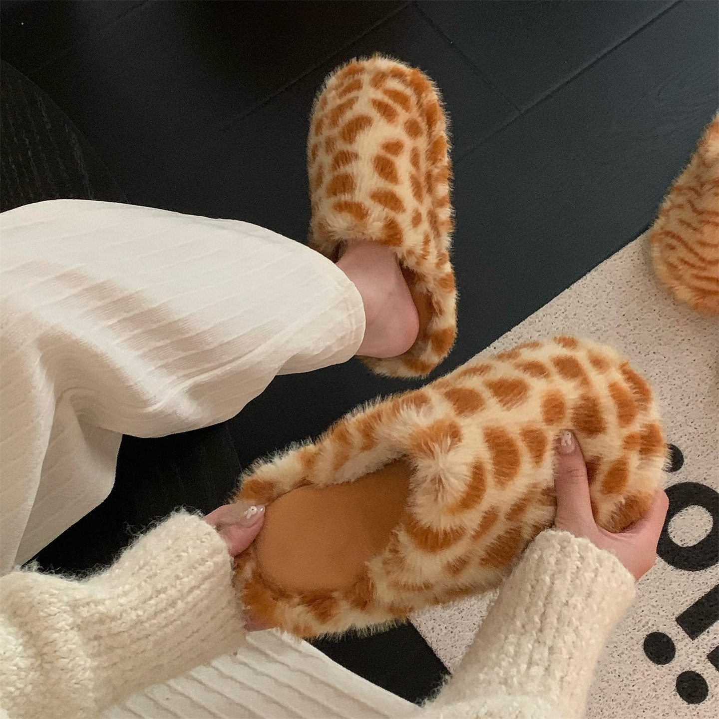 细细条 女保暖学生居家高级感防滑冬季 棉拖鞋 ins 可爱橘猫纹毛毛鞋由