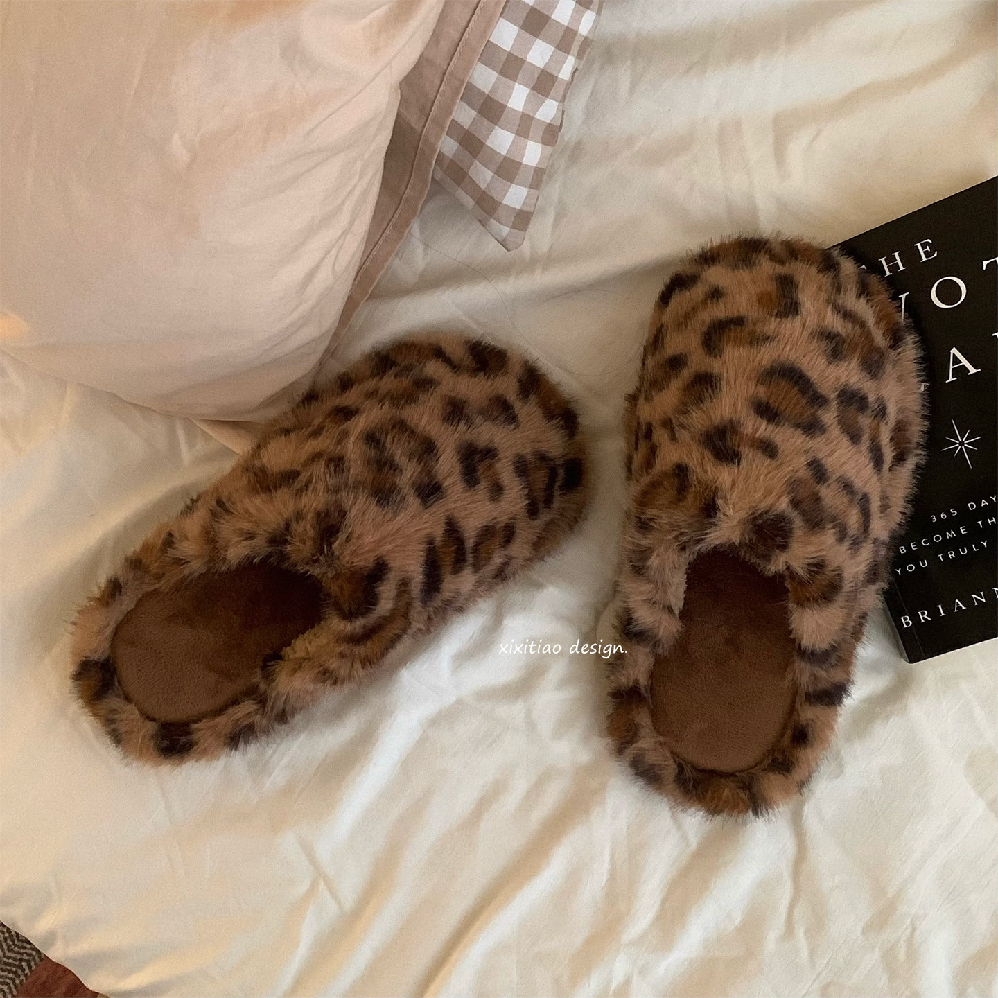 细细条 女保暖学生居家高级感防滑冬季 棉拖鞋 ins 可爱橘猫纹毛毛鞋