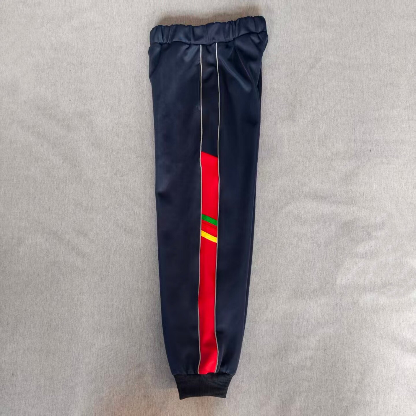 为您提供商品定做春秋冬男女校裤 运动裤 藏蓝色拼接绿红黄三色条加绒休闲裤 同款的详细介绍,