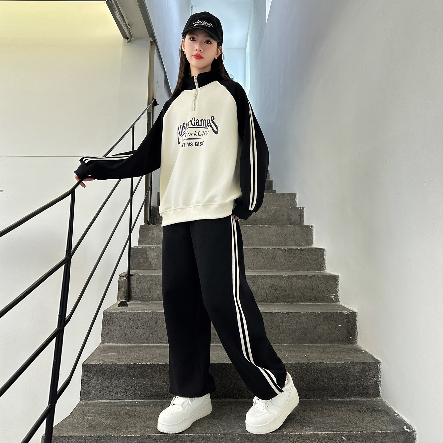 为您提供商品女童春秋运动套装 洋气半拉链卫衣大童学生装 阔腿裤 两件套 2026新款的详细介绍,