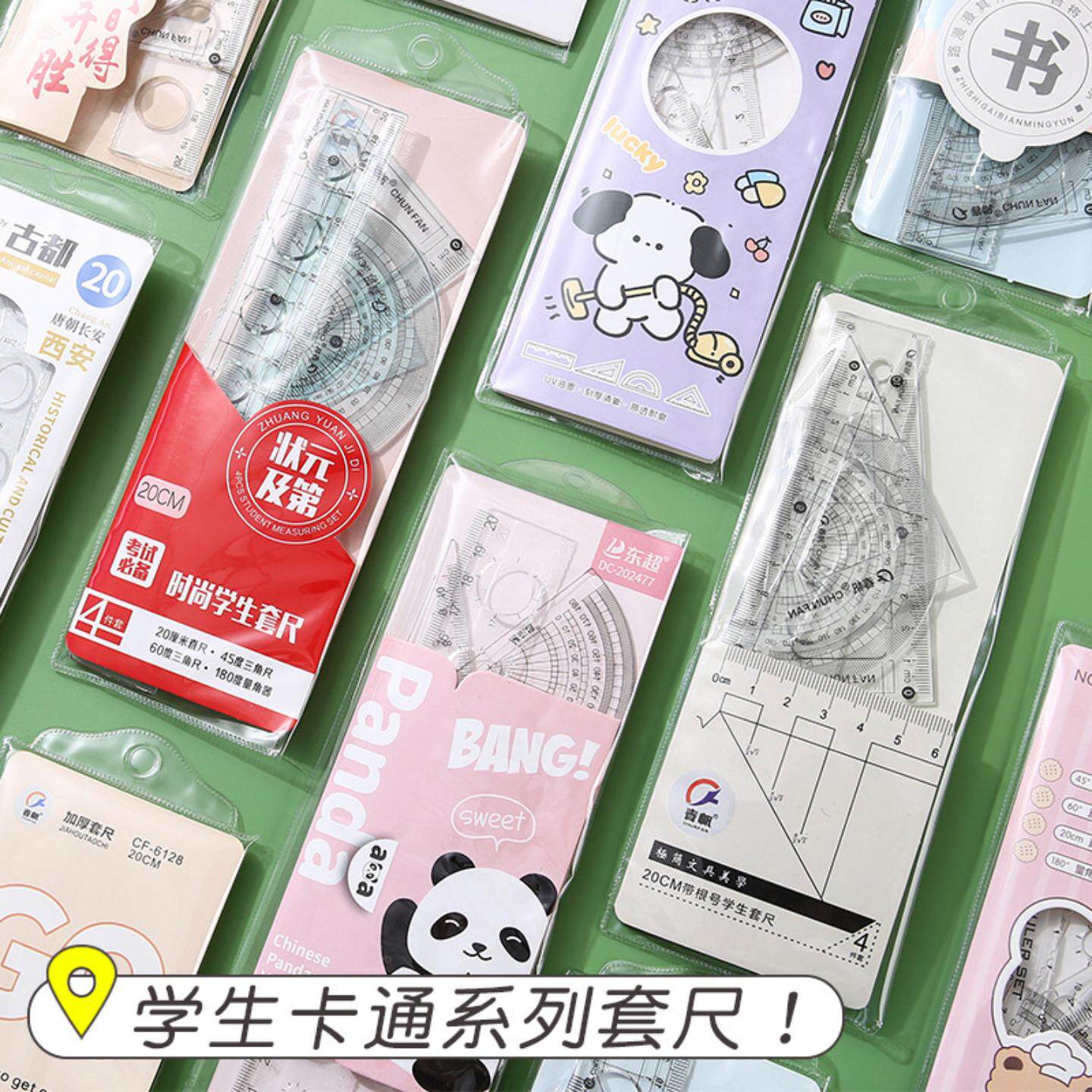 三角板 量角器 可爱学生直尺三角板量角器四件套透明套尺尺子各类尺 尺子套装