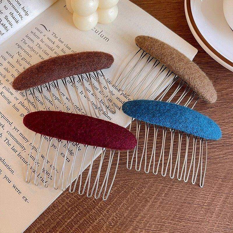 复古毛呢倒插梳发夹女碎发整理神器发梳公主头侧边夹刘海固定发卡