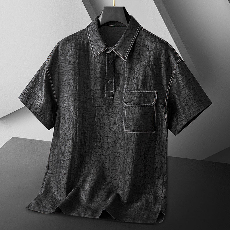 老爷车夏季 polo衫 中年爸爸休闲裤 两件套 透气100%桑蚕丝香云纱套装由