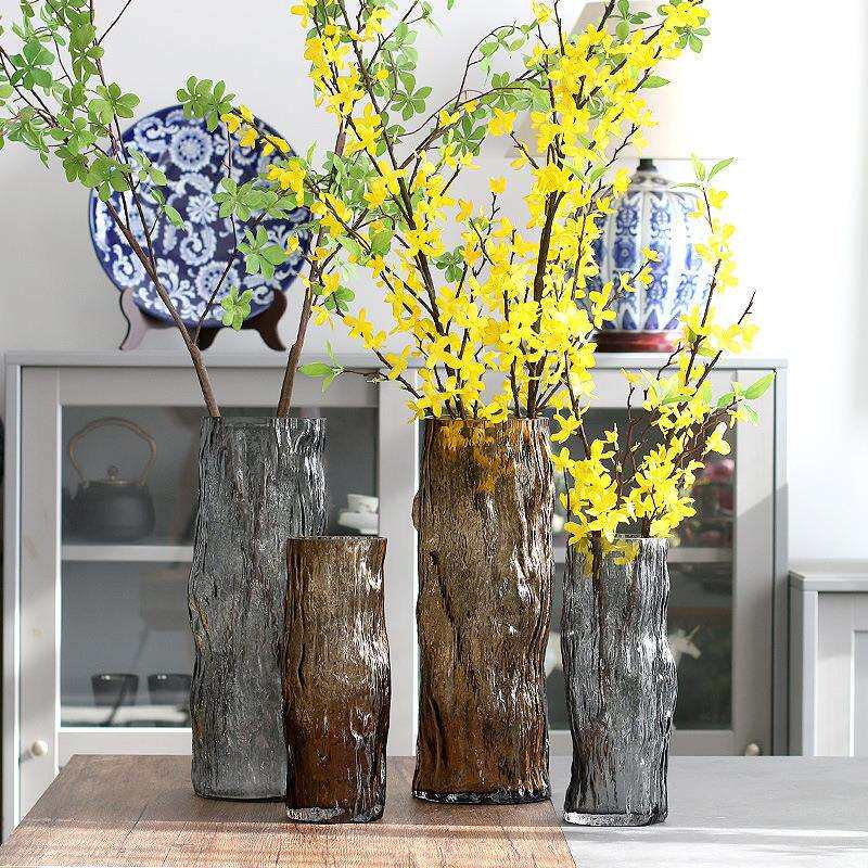 饰摆件 简约现代艺术异形树桩花瓶透明插花水养玻璃大花器客厅装